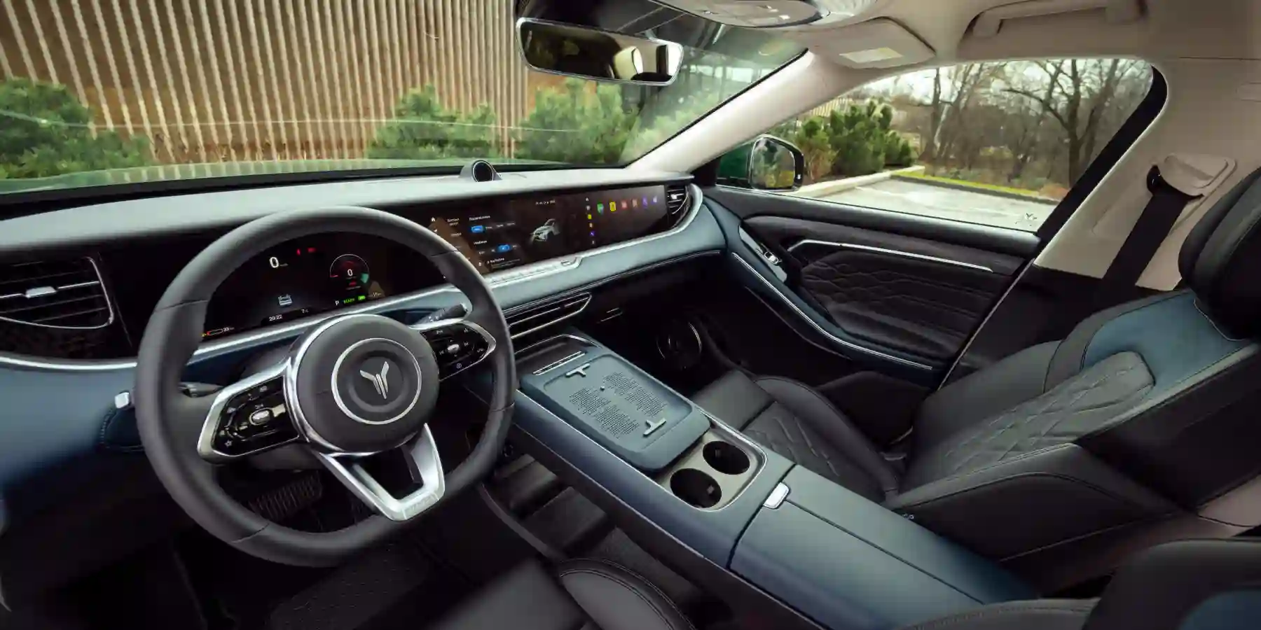 Подчеркнутая технологичность внутреннего пространства составляет характерную особенность модели VOYAH FREE EVR SPORT EDITION. В ряду ключевых элементов интерьера – первая в мире подъемная панель приборов с тремя интегрированными 12,3” дисплеями и «штурманский» экран, который позволяет легко настроить аудио-систему и разобраться с видео-контентом как водителю, так и переднему пассажиру. Обивка сидений кроссовера выполнена из высококачественной экокожи Oeko-Tex Сertification.